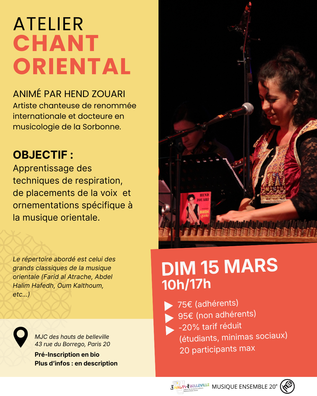 Les ateliers d’ensemble (chorale, ukulélé, klezmer, musique classique, fanfare, musiques traditionnelles, orientales, classique, accordéon, big band jazz) se produisent régulièrement dans le 20ème arrondissement de Paris : cafés, salles de concert, bar, jardins, fêtes de quartiers, ehpad, écoles etc… Ne ratez aucun concert et suivez toute notre actualité sur nos réseaux ou abonnez-vous à notre infolettre :